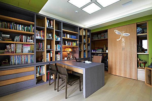 搭配左右移動式的書桌規劃讓書房變得有趣